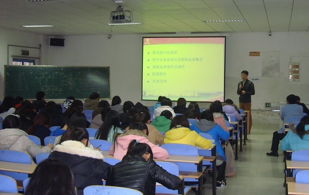 马骏骑现工作于港中旅国际(山东)旅行社有限公司,任短线部经理一职。他结合自己的亲身工作经历,介绍了青岛旅行社现状、 旅行社业务划分及短线业务概况、短线业务报价及操作、现场报价等,并与大家进行了深入的互动交流。