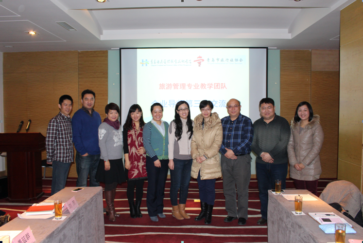 交流活动现场,刁洪斌介绍了过去一年学院的发展情况,重点回顾了双方共建《旅行社计调实务》课程,协会选拔16位企业老总担任课程主讲教师,开放企业资源给专业老师等活动,对于双方自合作以来取得的积极成果表示祝贺和感谢。随后,杨栋带领五位教师与五位企业导师就如何利用导师制为契机推动青岛市旅行社协会与学院在教学、实习、社会服务等方面的交流与合作进行了研讨。经过近三个小时的交流,最终双方在企业实践案例集的编写、学生顶岗实习、教师企业锻炼、校企横向课题等方面形成一致意见及具体方案,效果显著。