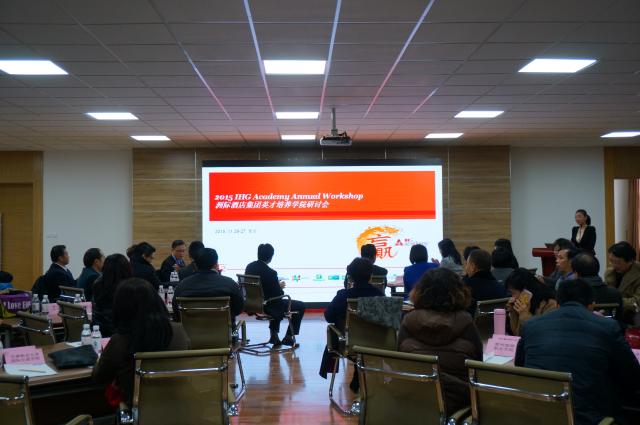 11月26-27日,全球最大酒店集团——洲际酒店管理集团在我院召开英才学院研讨会。洲际集团大中华区人力资源副总裁许有俊、洲际集团大中华区人力资源资深精英拓展总监郑芸、洲际集团英才学院项目经理胡晓,洲际酒店集团大中华区四大分区域数10家酒店总经理以及我院党委书记李达、院长姜玉鹏、院长助理刁洪斌、旅游与酒店管理学院副院长石媚山出席会议相关活动。