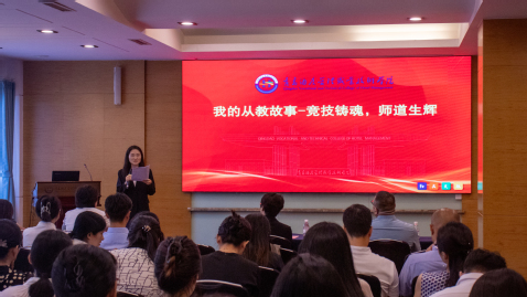 酒店管理学院新入职的两位博士教师依次发言,分享了他们的教育初心与职业理想,表达了成为一名人民教师的荣幸与使命感,展现出青年教师的蓬勃朝气。