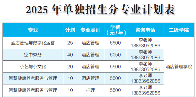 2025年酒店管理学院单独招生计划