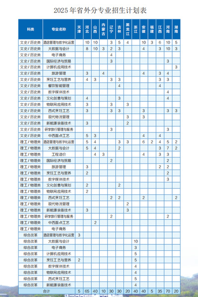2025年省外分专业招生计划表