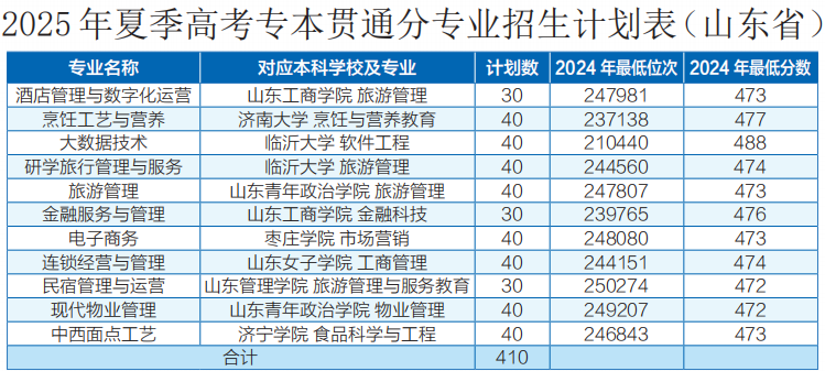2025年夏季高考3+2专本贯通分专业招生计划表(山东省)