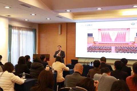 在学校发展层面,刁洪斌强调,要以全会精神为指引,深化教育教学改革,结合学校发展规划与职教本科创建目标,优化专业设置,强化产教融合、校企合作,将学校打造成为支撑区域现代服务业升级的人才高地与创新基地。