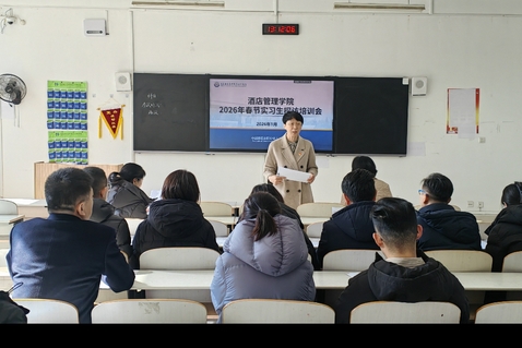 本网讯(酒店管理学院 王志飞)1月11日下午,酒店管理学院在A212召开2026年春节实习生探访培训会。酒店管理学院院长冷雪艳、党总支书记徐莉出席会议。会议由学院实习实训办公室主任李云鹏主持。